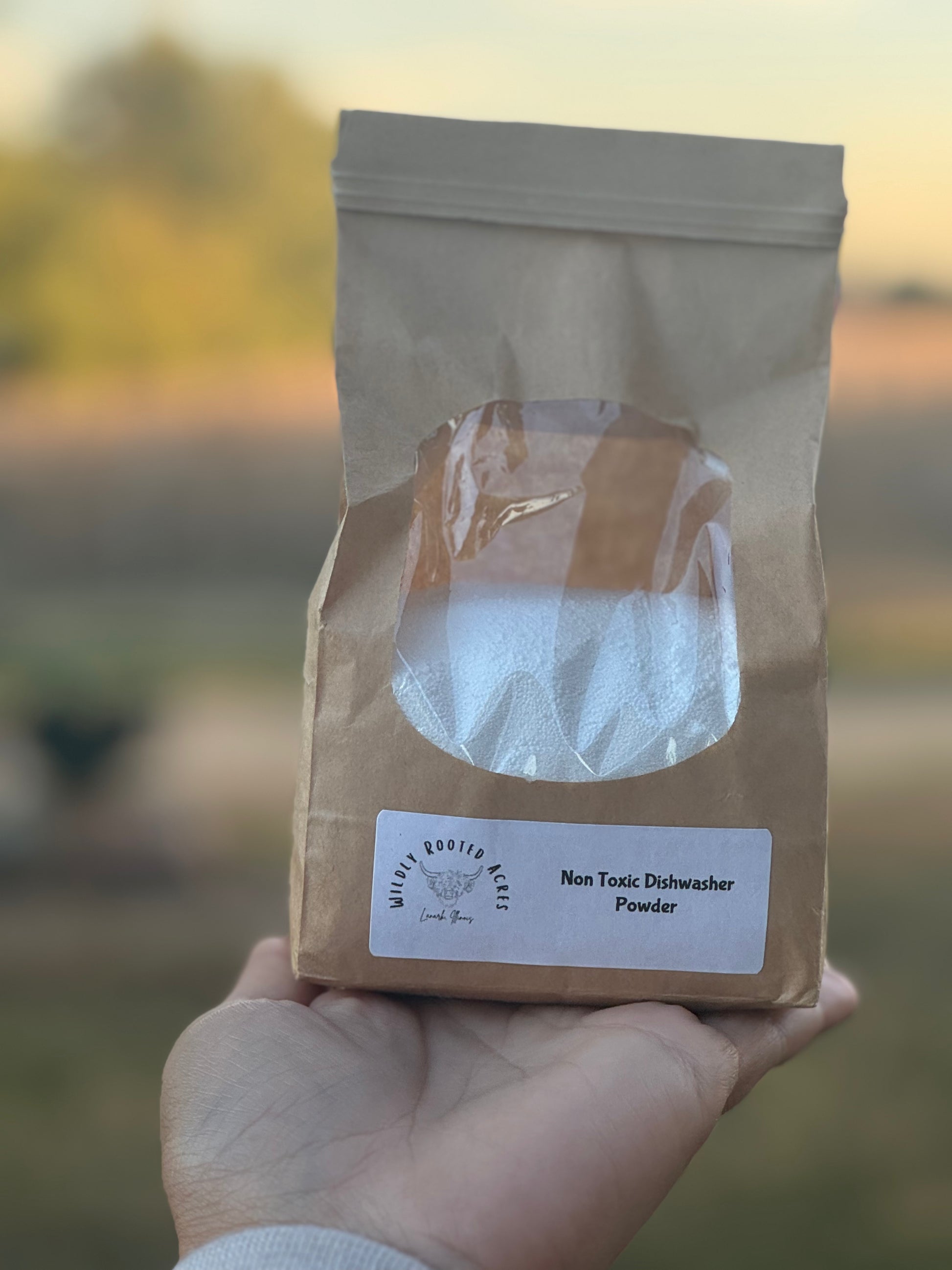 Our non-toxic dishwasher soap is made with a simple, effective blend of sodium carbonate, sodium percarbonate, and sodium citrate. This powerful yet gentle formula cuts through grease, lifts away food residue, and leaves your dishes sparkling clean — without the harsh chemicals found in conventional detergents. Safe for your family and the environment, it’s a powdered formula that’s easy to use and free from synthetic fragrances, dyes, and toxins. Roughly 30 washes per bag!